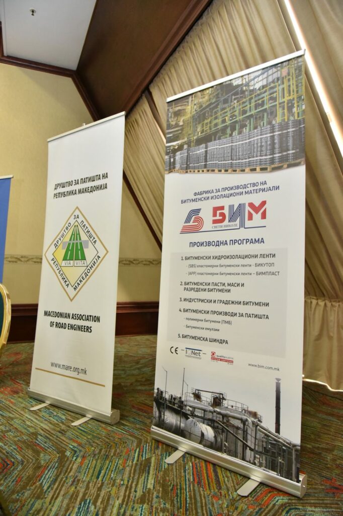 На 17 Мај 2019 година во хотел Холидеј Ин, Друштвото за патишта на Македонија во соработка со Јавното претпријатие за државни патишта на РМ, поддржани од Универзитетот Свети Кирил и Методиј во Скопје и Градежниот факултет при УКИМ, одржаа Презентација на меѓународниот научен проект: ,,ПРИМЕНА НА ПМБ ВО НОСЕЧКИТЕ АСФАЛТИ СЛОЕВИ НА КОЛОВОЗНАТА КОНСТРУКЦИЈА КАЈ ПАТИШТАТА СО ТЕШКО СООБРАЌАЈНО ОПТОВАРУВАЊЕ И АВТОПАТИШТА.,, Покрај домашните компании БИМ а.д. Свети Николе и ГД Гранит а.д. Скопје, во проектот учествуваше американската компанија DOW и Чешкиот технички универзитет во Прага. На Презентацијата присуствуваа 150 стручни лица од домашни и странски компании од областа на патиштата. Свое обраќање до присутните имаа Претседателот на ДПМ В. Проф. д-р Горан Мијоски, Раководителот на ДАУ за пазарите на Европа, Блиски исток и Африка д-р инж. Петко Крстев, Деканот на Градежен факултет – Скопје Проф. д-р Дарко Мославац, Ректорот на Универзитетот „Св. Кирил и Методиј“ – Скопје Проф. д-р Никола Јанкуловски, Директорот на ЈПДП Г-дин Зоран Китанов, дипл. Правник, Министерот за транспорт и врски во Владата на РС Македонија г-дин Горан Сугарески, а свои теми со презентации во врска со меѓународниот научен проект имаа Џозеф Хамачек (Регионален претставник на ЦИЕ Инфраструктура, ДАУ Европа): Различни технологии за модификација на битумен, В. Проф. д-р Отокар Вацин (Чешки технички Универзитет – Прага и Глобален претставник за апликативни технологии на ДАУ Европа): Полимер модифицирани битумени со еластомерни тер полимери и нивни мешавини со други полимери, д-р инж. Петко Крстев (Менаџер за развој на ЕМЕА инфраструктура, ДАУ Европа): Споредба на различни асфалтни мешавини со ПмБ вградени на експерименталната делница од автопатот А1 и В. Проф. д-р Горан Мијоски (Градежен факултет – Скопје): Презентација на резултатите од испитувањата на површинските карактеристики на коловозот.